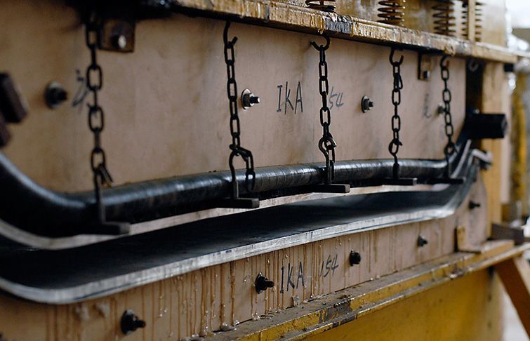 With over 100 cavities, we can press quite a few skis or snowboards. Our electrically temperature controlled presses use heated and cooled water to ensure consistant camber heights and overall board shape. The right temperature is crucial for activating epoxy and thusly creating you a solid ski or snowboard.