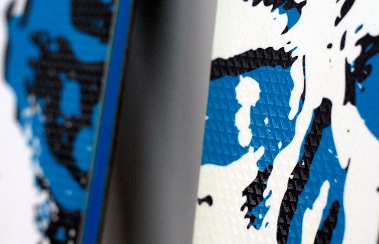 Topsheet material has to be durable and yet it also has to flex. We use topsheet materials that maintain impact strength at low temperatures. We also bamboo, which adds durability, tensile strength, strength-to-weight benefits and its impact resistance. Bamboo is also a renewable resource. By replacing the plastic topsheet with bamboo, we are helping the environment while benefiting overall ride quality.